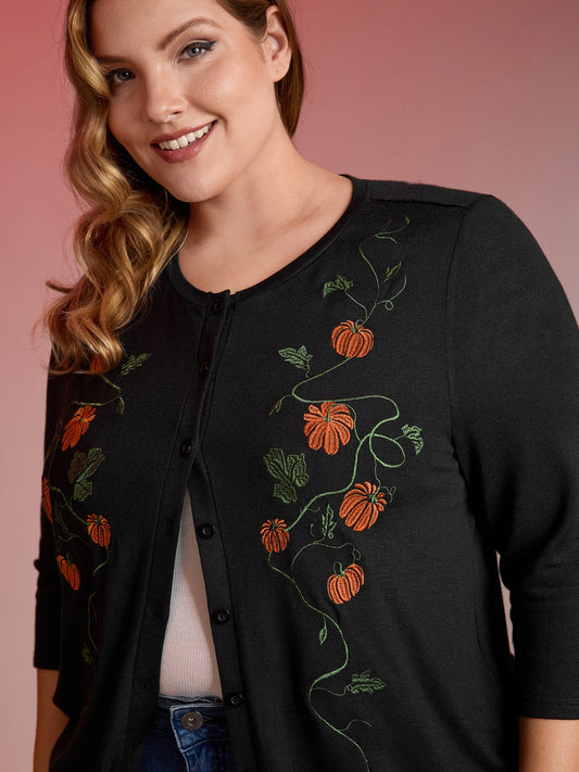 Floral Embroidery Stretch Knit Button Top