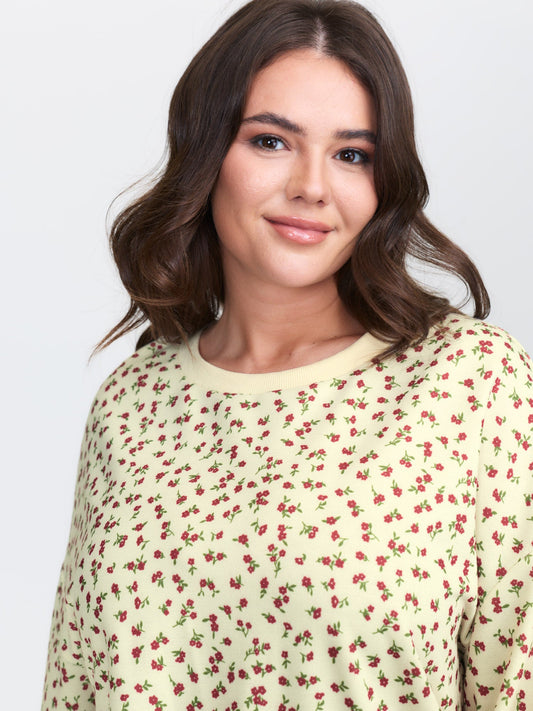Ditsy Floral Print Stretchy Hem Sweatshirt