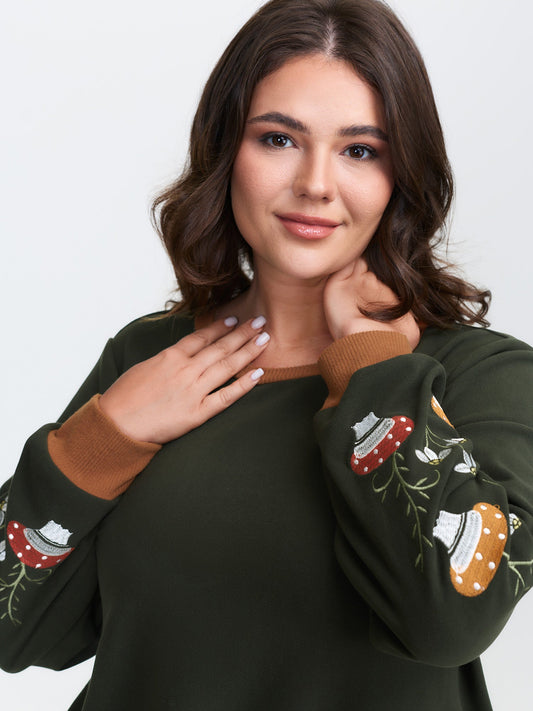 Plush Mushroom Embroidered Sleeve Sweatshirt