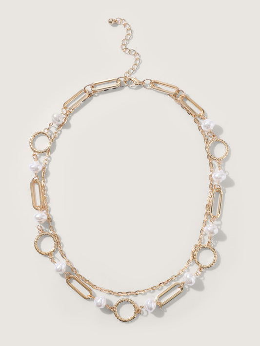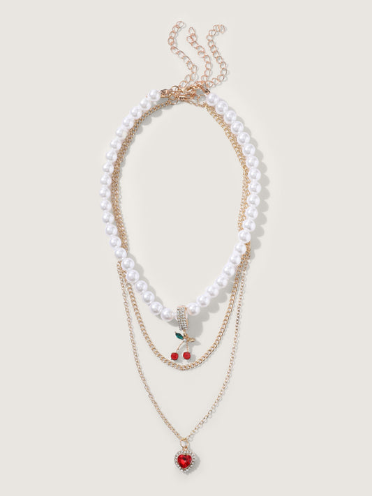 Pearl Decor Heart Charm Layered Necklace