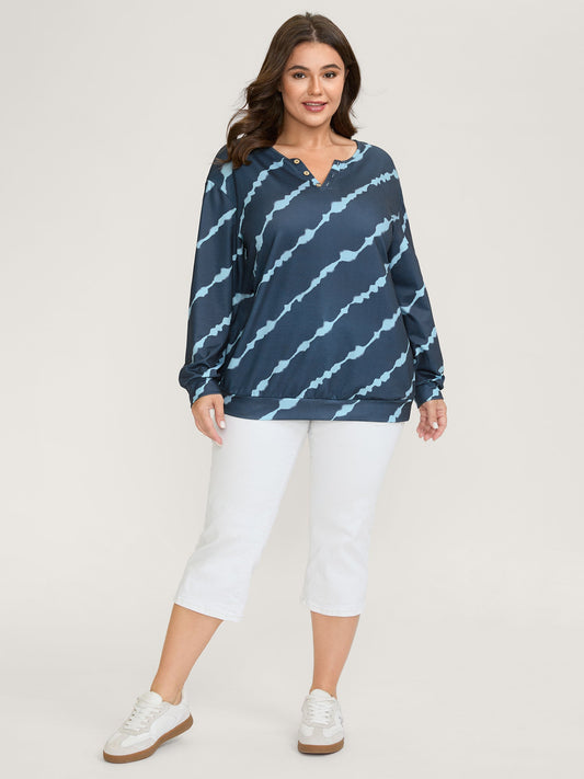 Tie-Dye Stripes Button Detail Sweatshirt