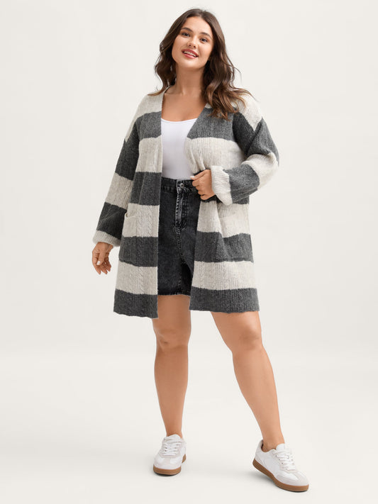 Striped Tissue Texture Knit Cardigan
