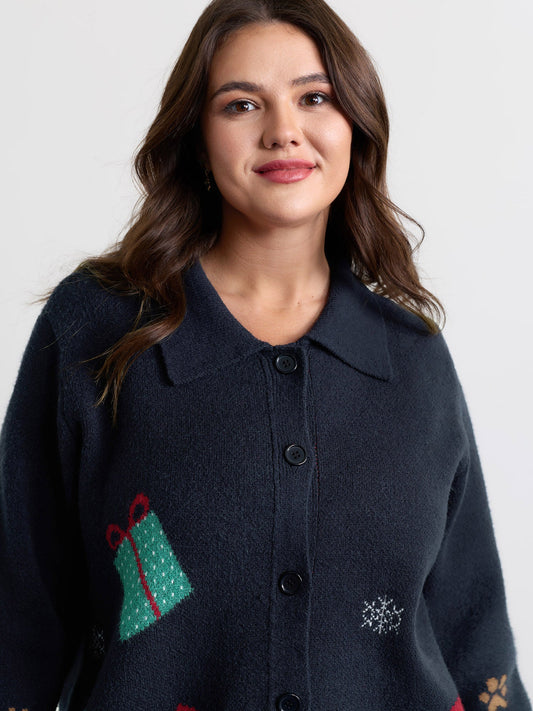 Supersoft Festive Pattern Jacquard Pockets Knit Cardigan