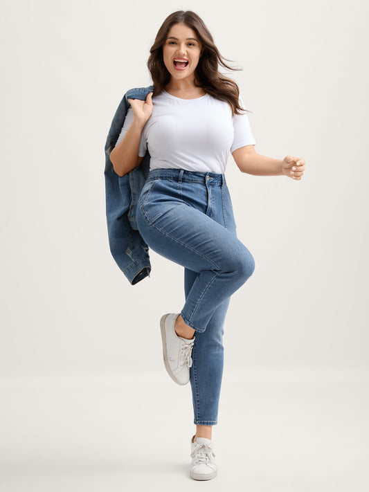 Drawstring Waist Elastic Waist Straight-Leg Jeans