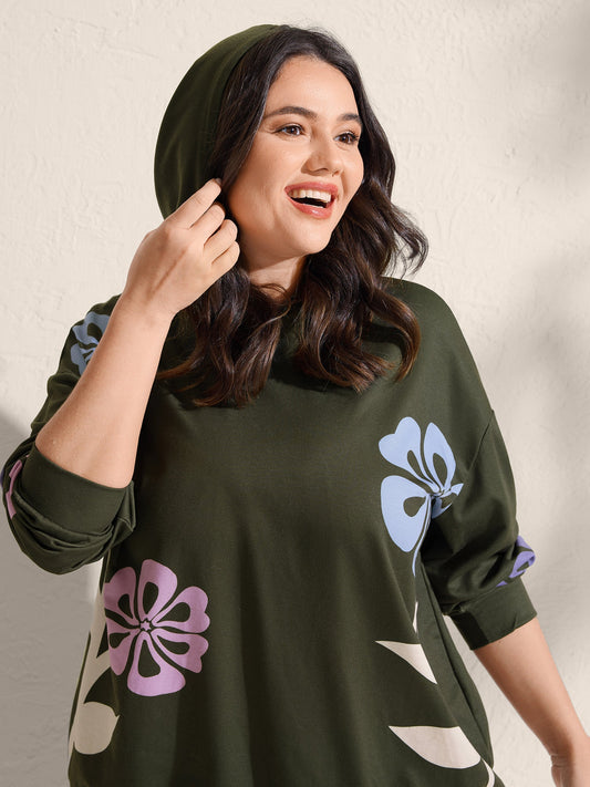Floral Print Elastic Hem Hoodie