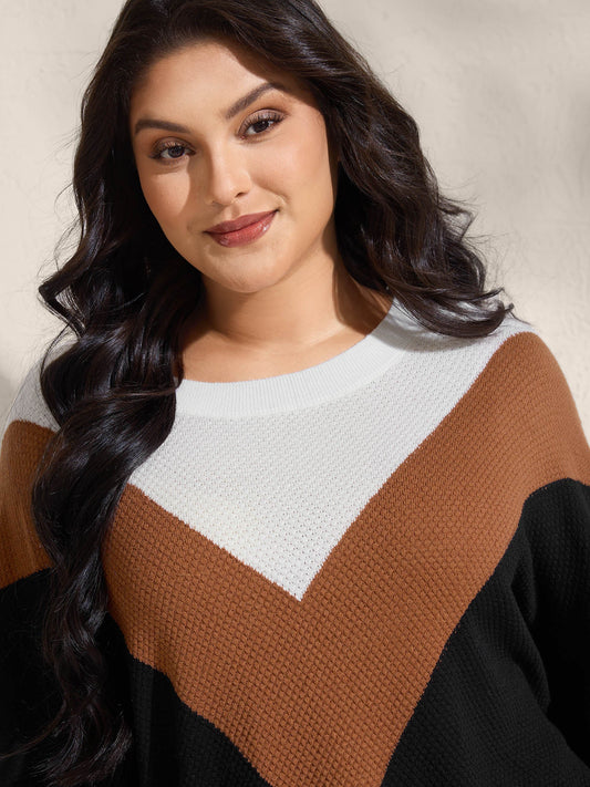 Color Block Drop Shoulder Ribbed Hem Pullover