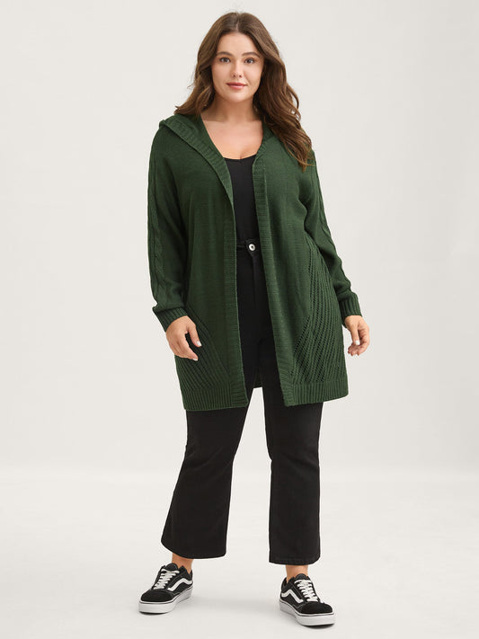 Textured Cut-Out Hooded Knit Cardigan