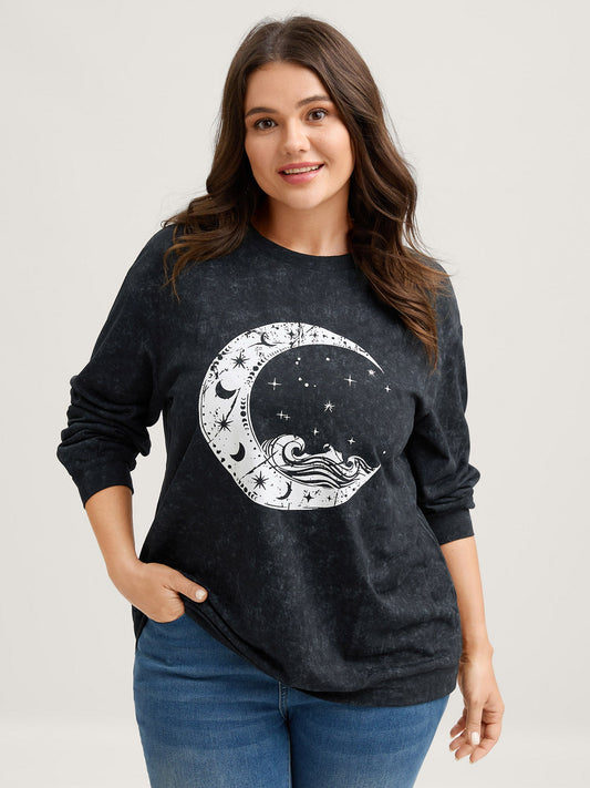 Celestial Print Vintage Solid Sweatshirt