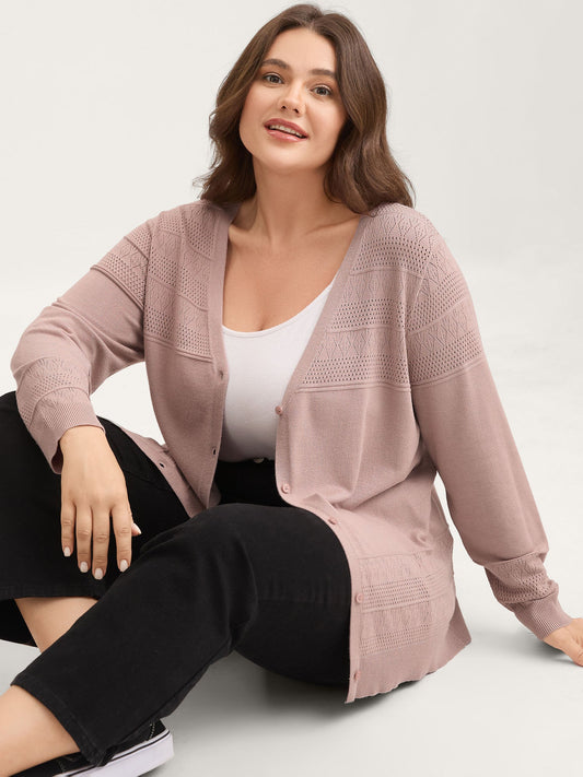Textured Button Long Sleeve Knit Cardigan