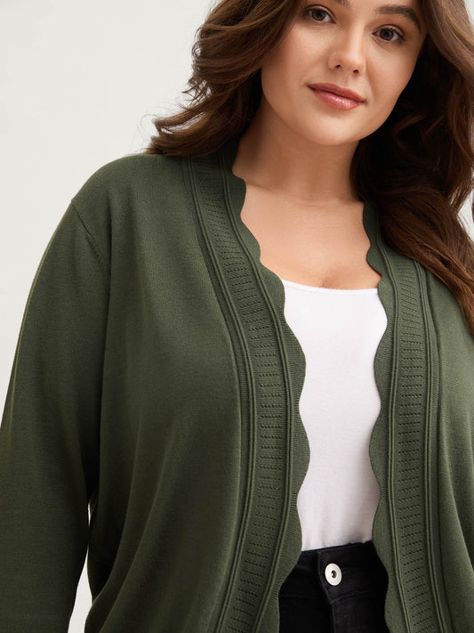 Scalloped Trim Three-Quarter Sleeve Knit Cardigan