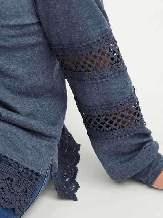 Lace Cut-Out Color Contrast Sweatshirt
