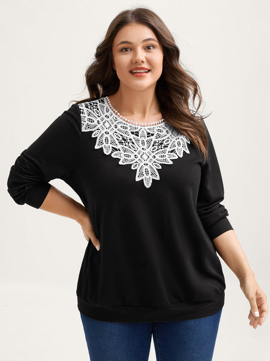 Lace Neckline Color Contrast Sweatshirt
