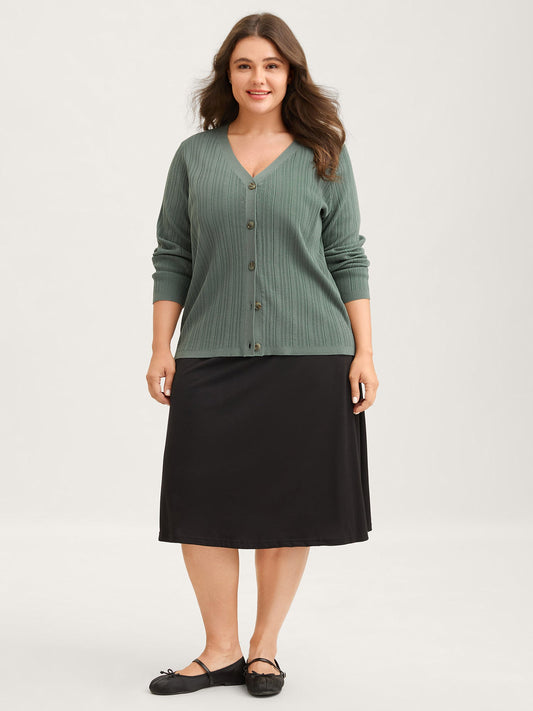 Textured Button Front Long-Sleeve Knit Cardigan