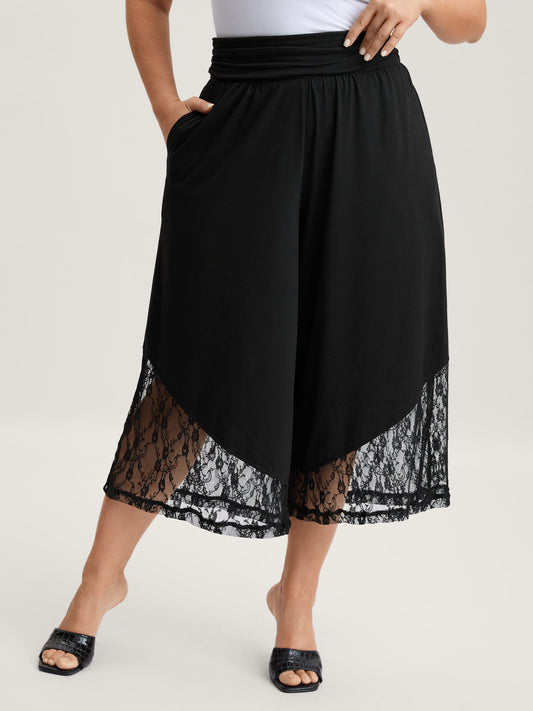 Lace Sheer Hem Wide Leg Pants