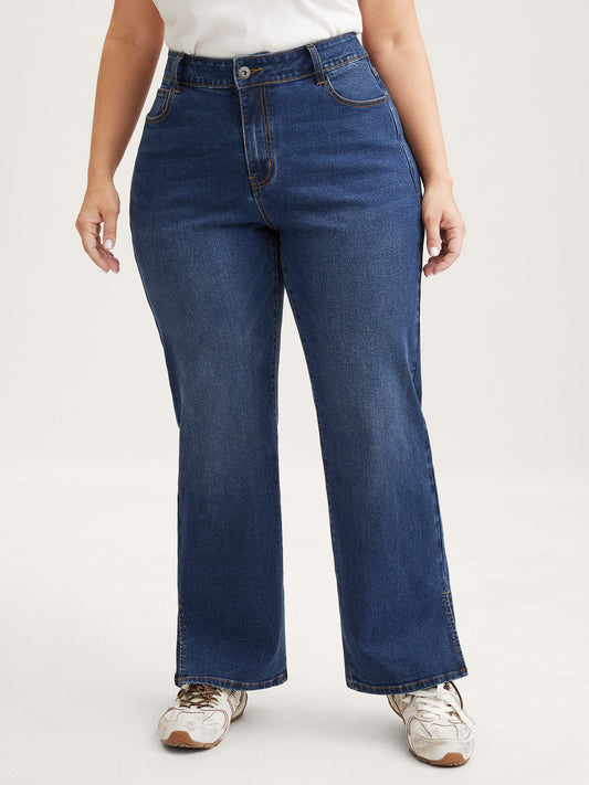 Vintage Split Hem Straight-Leg Jeans