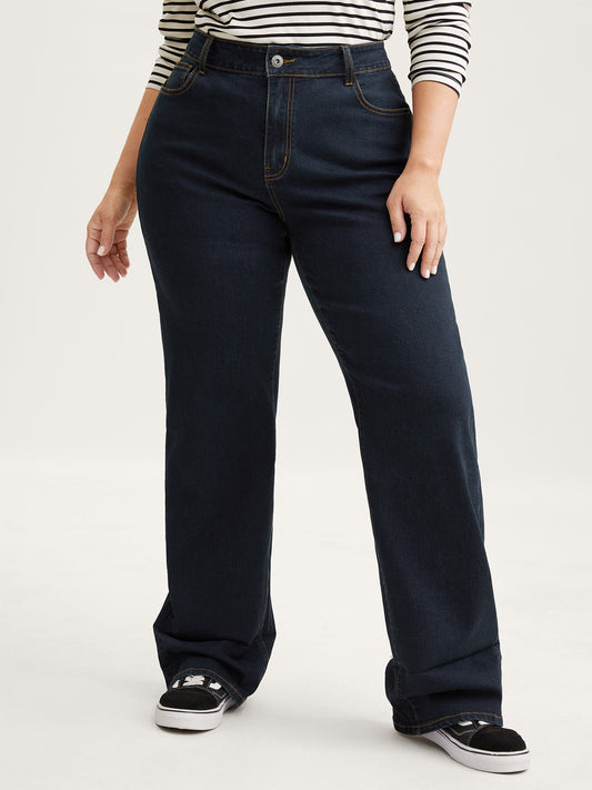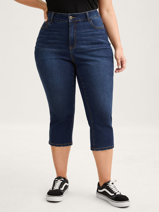 Stretch Cuffed Hem Butt-Lifting Straight-Leg Jeans