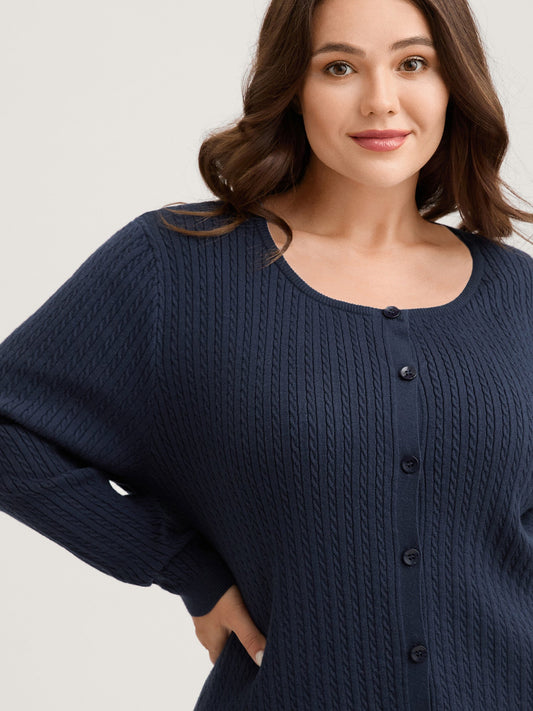 Supersoft Cable Knit Button Solid Cardigan