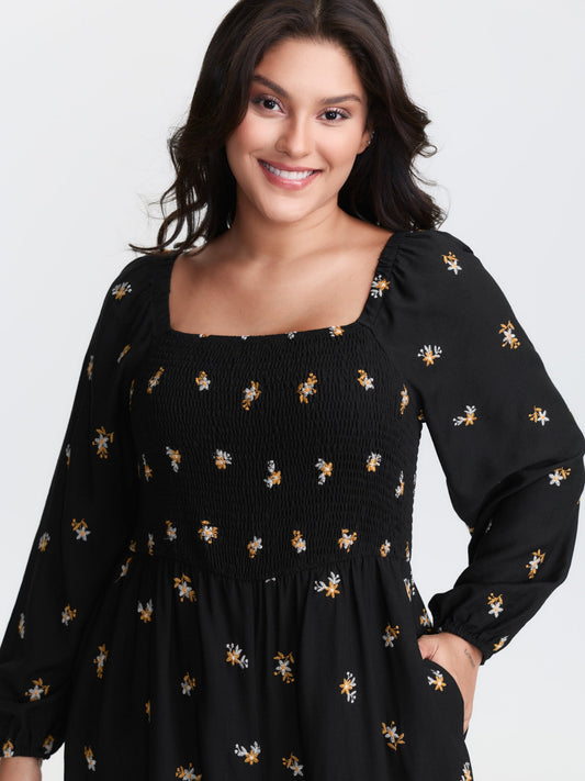 Leaf Print Pleated Off-Shoulder Midi Dress