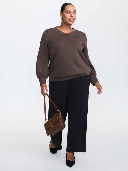 Supersoft Half Placket Puffy Sleeve Sweatshirt