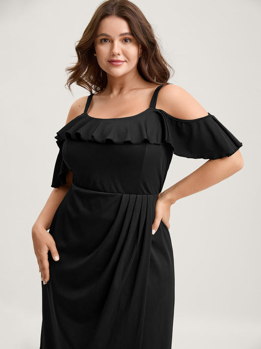 Pleated Ruffled Off-Shoulder Midi Dress