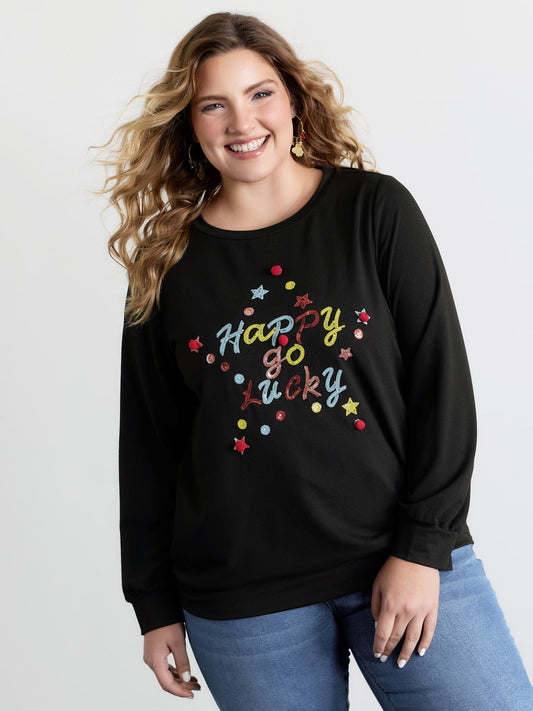 Happy Go Lucky Sequin Embroidery Sweatshirt