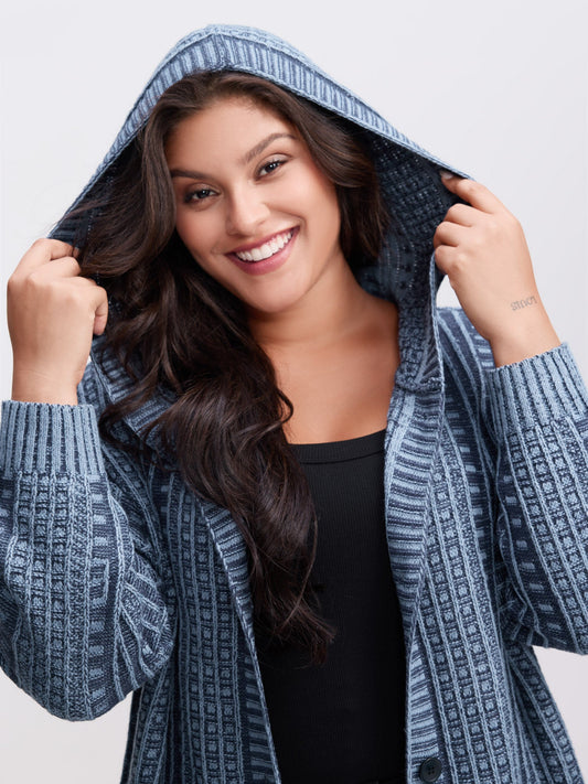 Hooded Textured Pockets Drop Shoulder Knit Cardigan