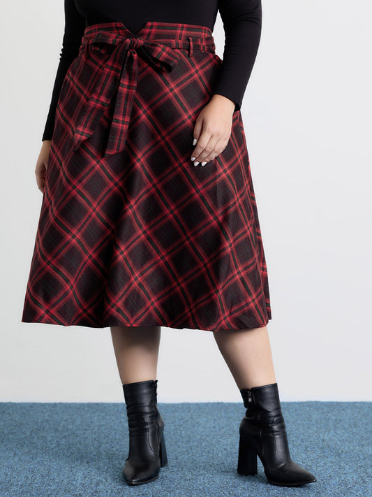 Plaid Waist-Tie Flowy Midi Skirt