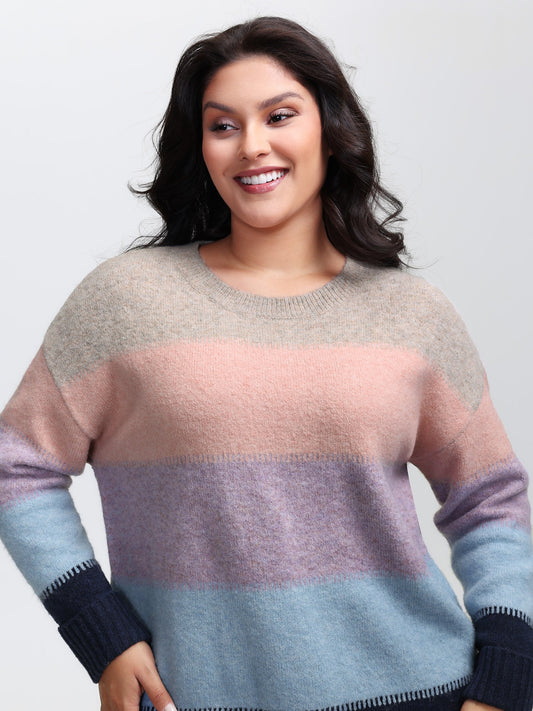 Color Stripes Round Neck Pullover