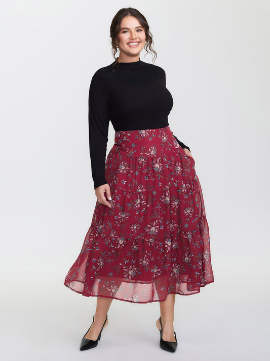 Floral Color Contrast Flared Sleeve Maxi Dress