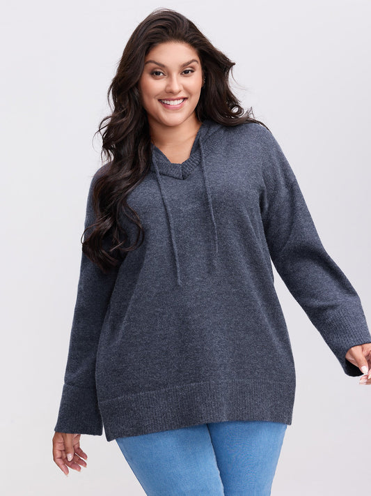Straight-Sleeve Hooded Solid Pullover