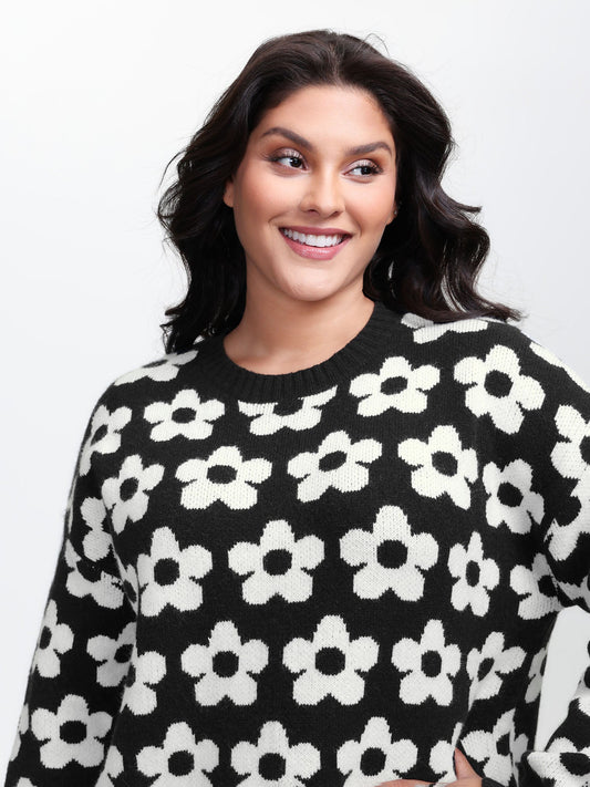 Flocked Lamb Curvy Hem Jacquard-Knit Cardigan