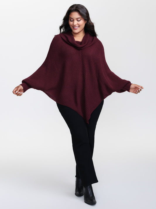 Turtle Neck Batwing Sleeve Asymmetrical Hem Pullover