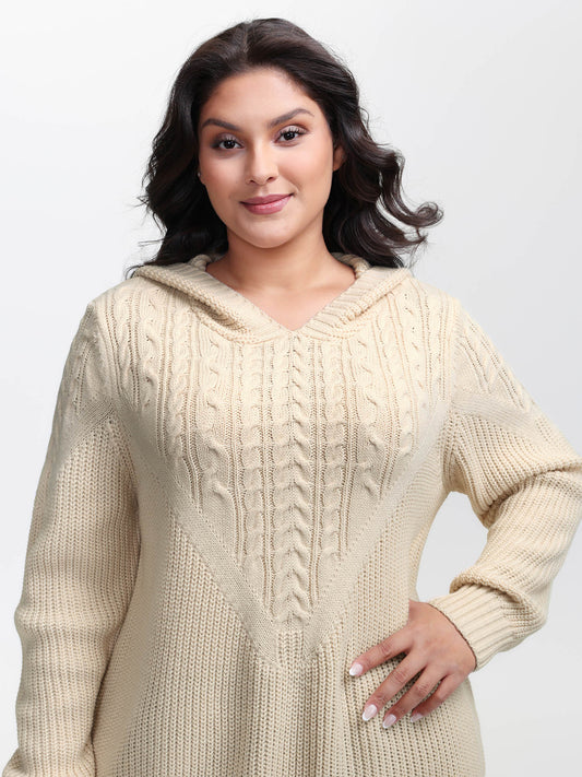 Textured Ribbed Hem Hooded Pullover
