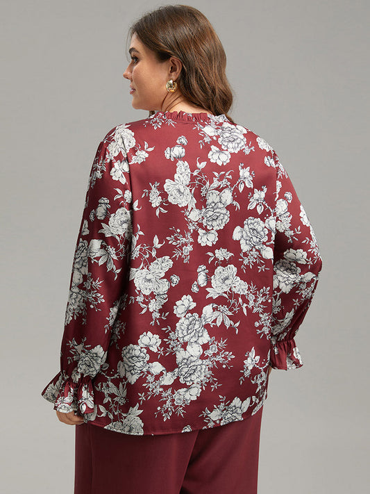 Silhouette Floral Print Frill Trim Button Detail Blouse
