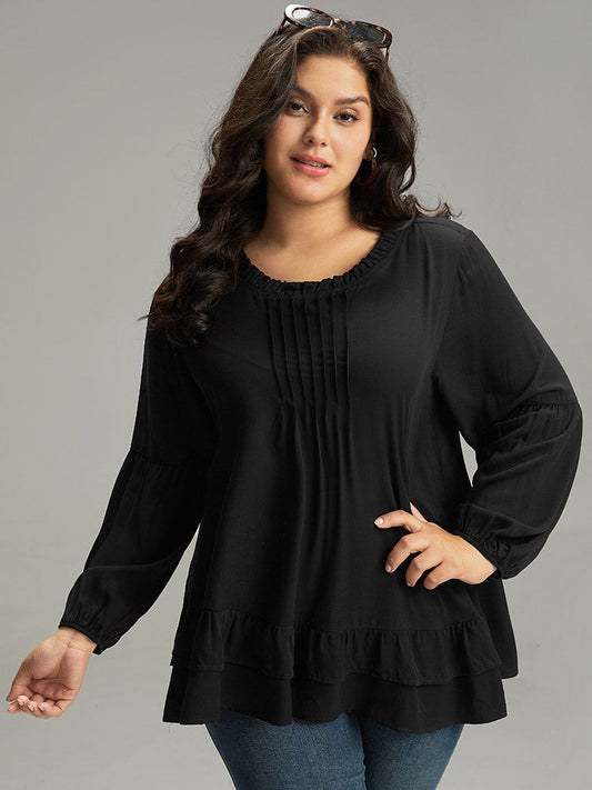 Anti-Wrinkle Laser Cut Contrast Ruffles Blouse