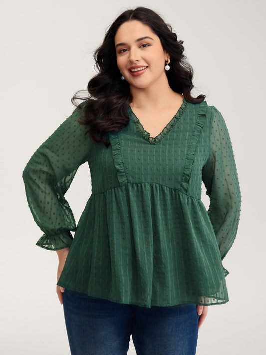 Ruffled Neckline Colorful Geometric Rayon Blouse