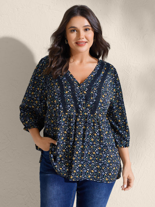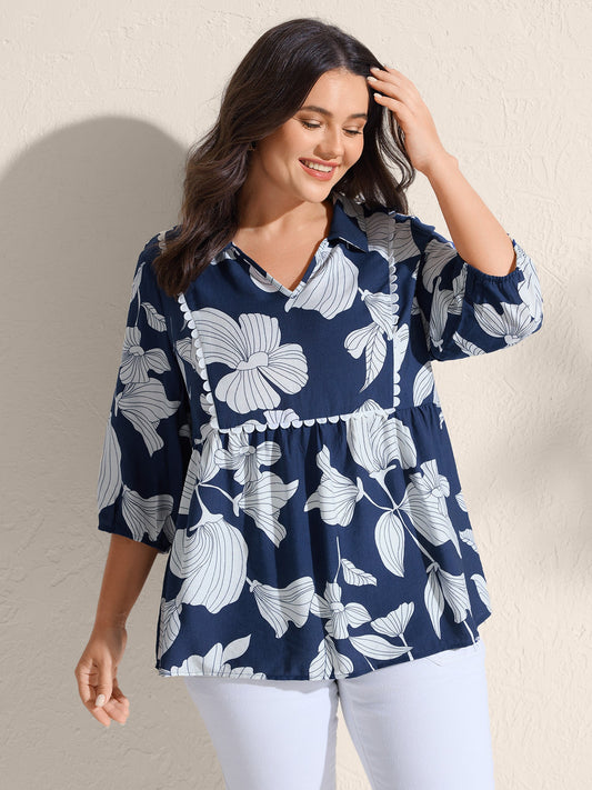 Boho Embroidered Neckline Ruffled Neck Blouse