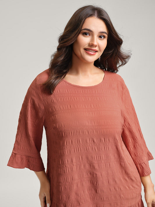 Ruffled Pleated Neck Lantern Sleeve Blouse