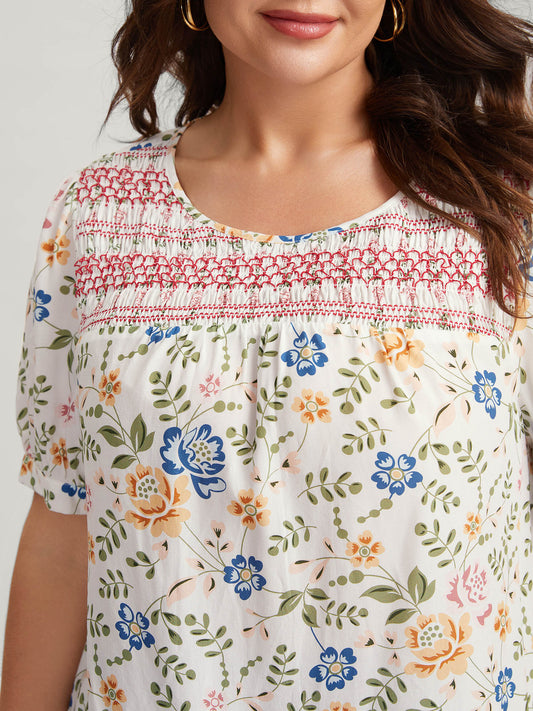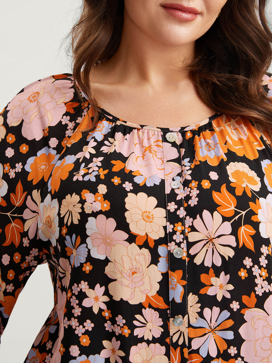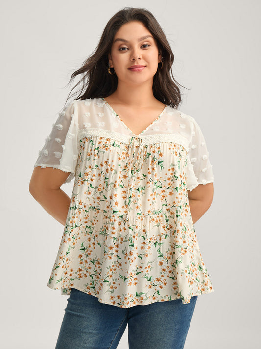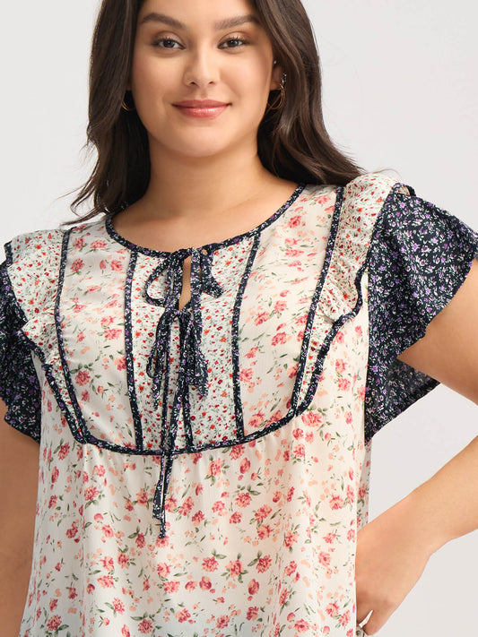Boho Print Neck Tie Lantern Sleeve Blouse