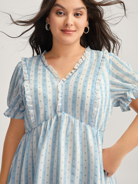 Textured Striped Print Ruffled Babydoll Top