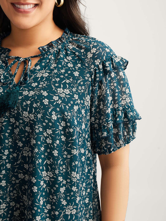 Delicate Florals Ruffled Tiered Sleeve Blouse