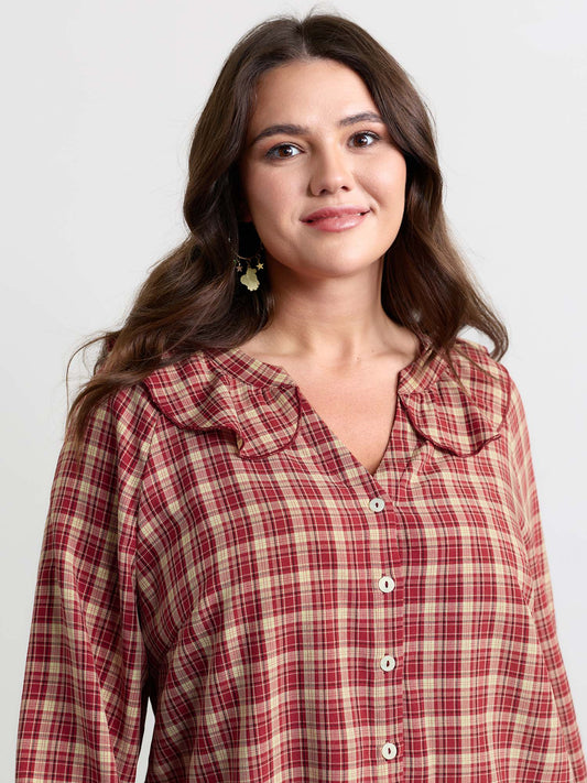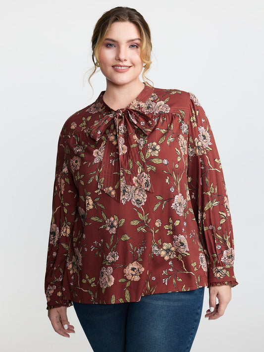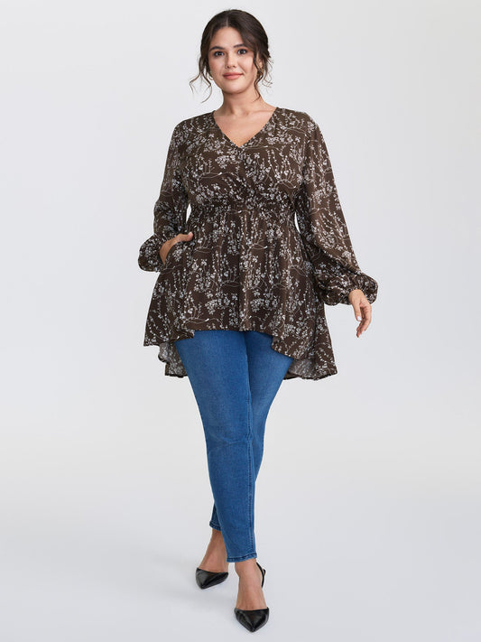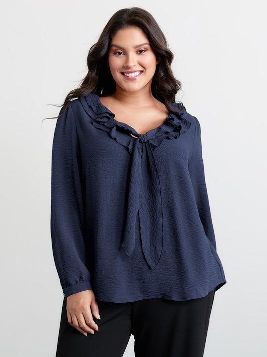 Ruffled Cut-Out Shoulder Flowy Blouse