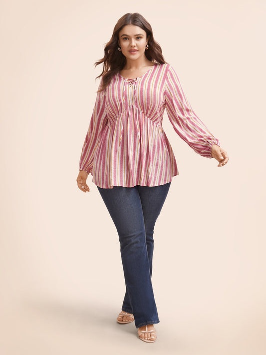 Striped Lace Up Lantern Sleeve Blouse