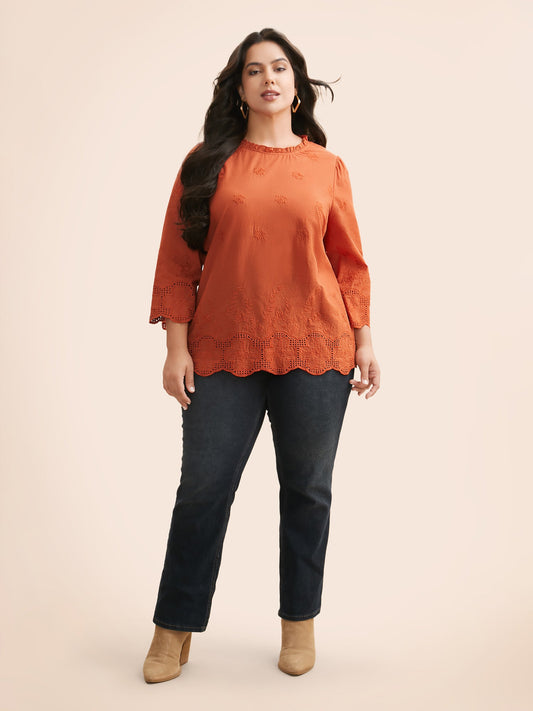Lace Collar Broderie Anglaise Bell Sleeve Blouse