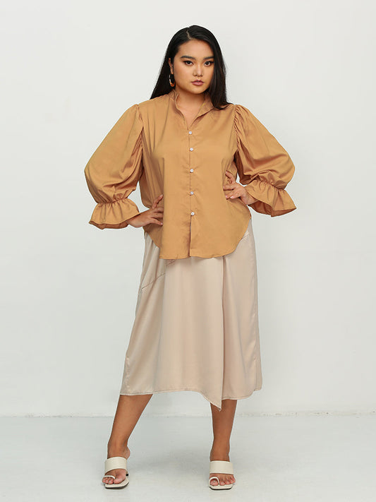 Puff Sleeve Irregular Hem Blouse