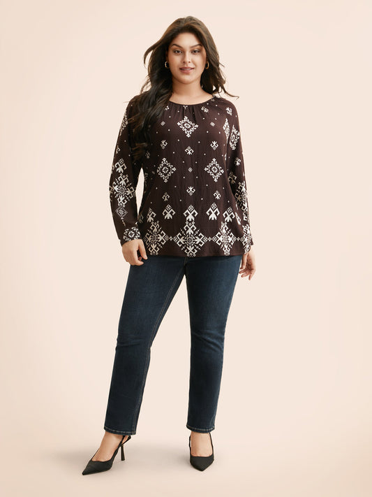 Pearl Beaded Petal Sleeve Stretch Blouse