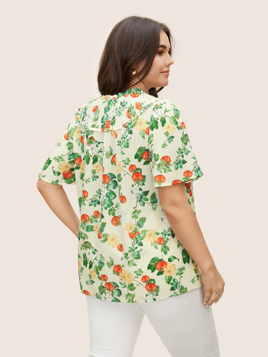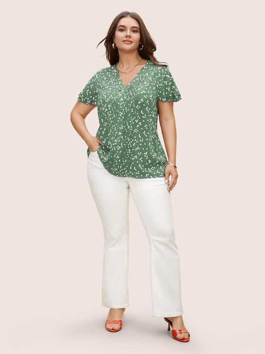 Ditsy Floral Pleated Button Detail Tiered Ruffles Blouse
