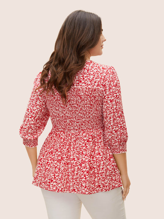 Square Neck Ditsy Floral Shirred Blouse