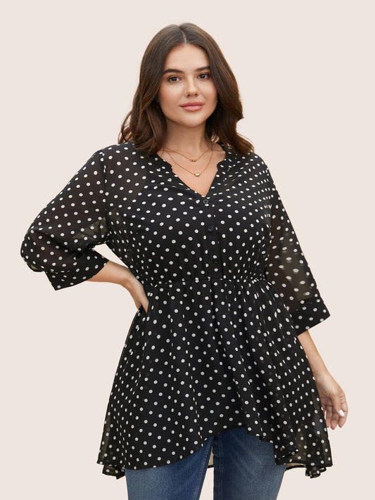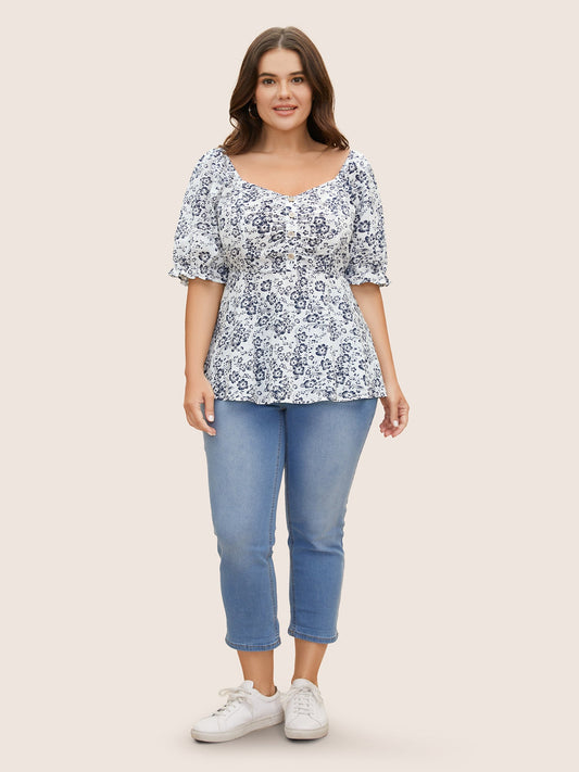 Cotton Flowers Button Detail Lantern Sleeve Blouse
