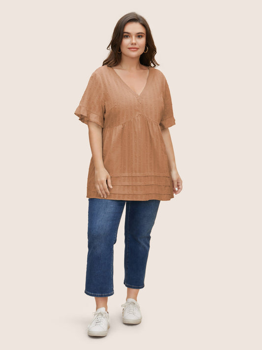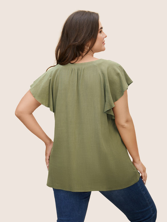 Linen Blend Gathered Ruffle Cap Sleeve Blouse